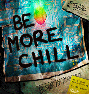 Nach dem Mega-Erfolg "Heathers" 2019 in der WABE präsentiert der Stagies Berlin e. V. die urkomische Science-Fiction-Geschichte eines Jungen, der gar nichts Besonderes sein will und es gerade dadurch wird. Be More Chill feierte 2015 Premiere und lief seitdem erfolgreich am (Off-) Broadway und Londons West End. Deutschsprachige Produktionen waren bisher rar, doch das ändern wir jetzt!